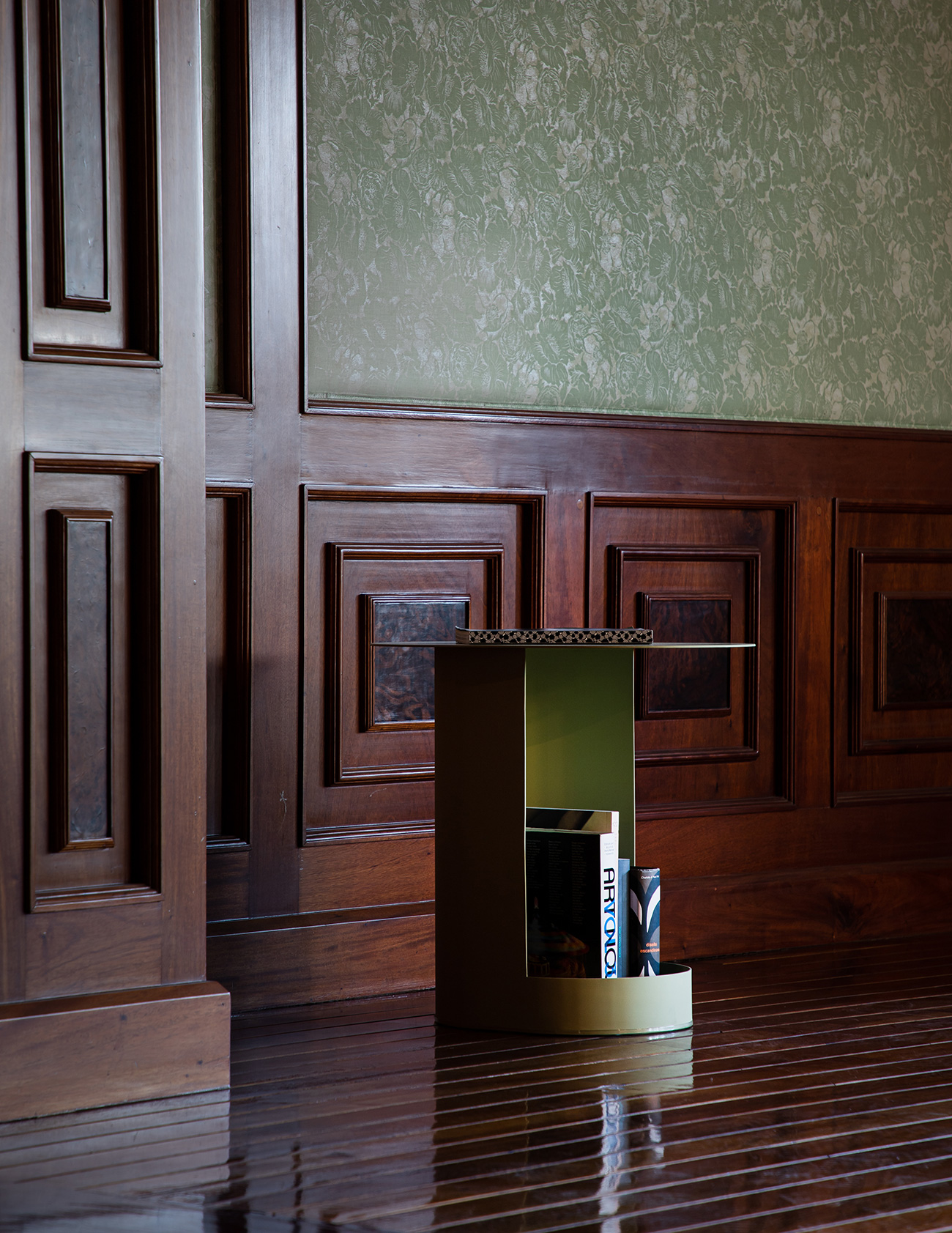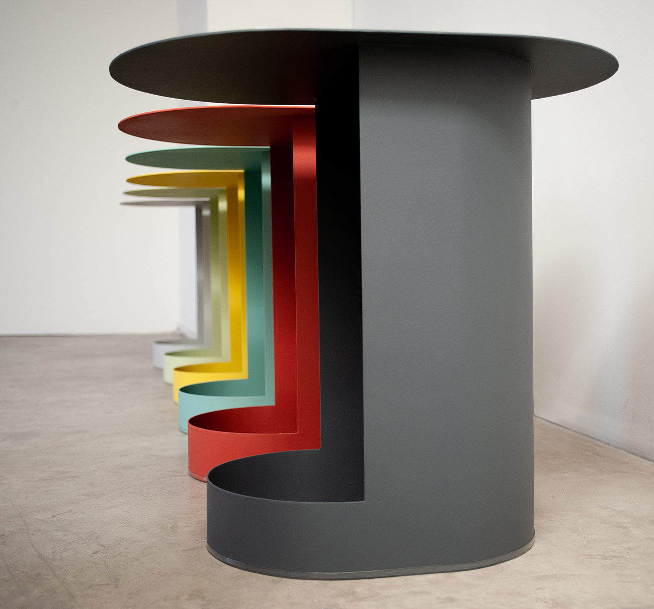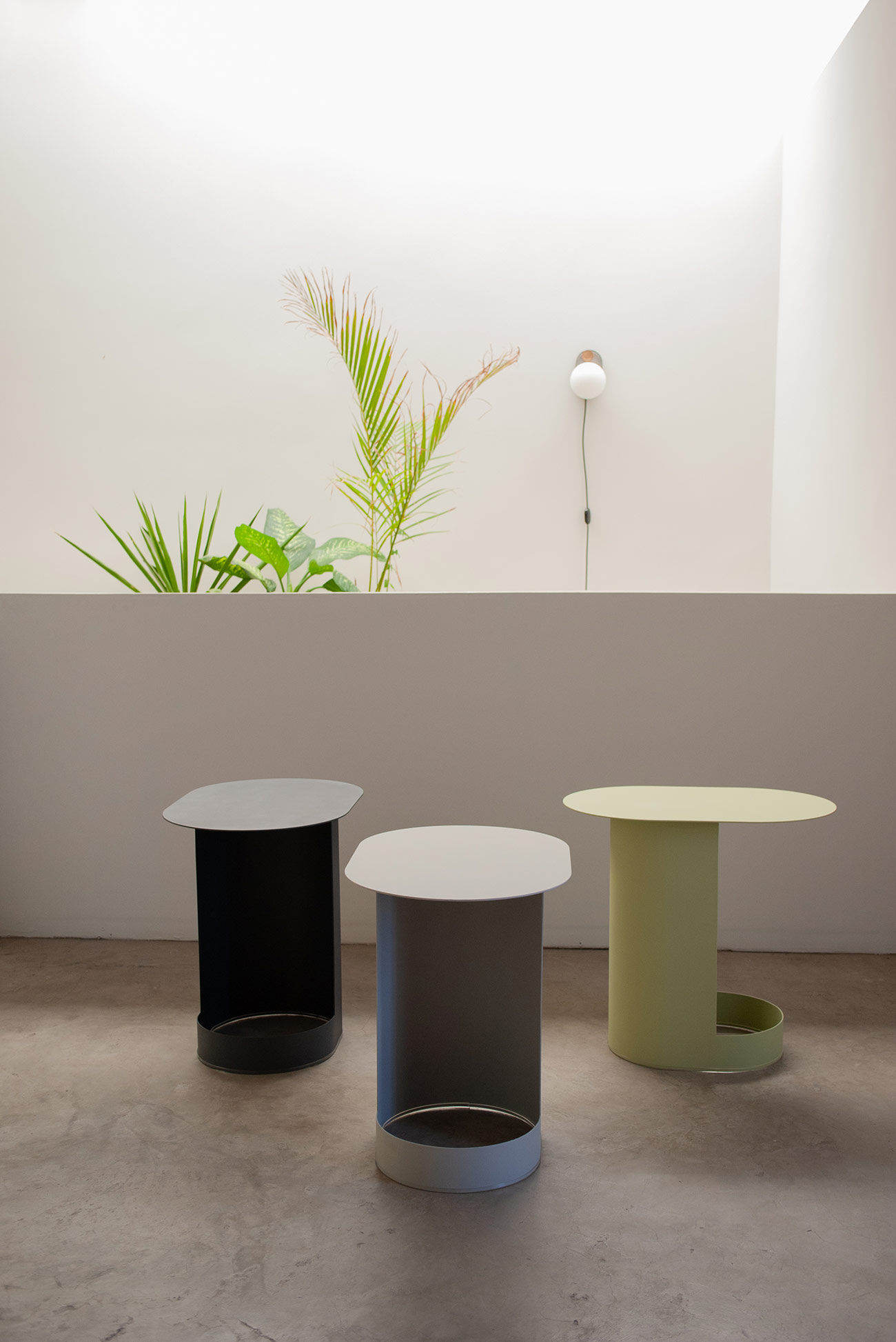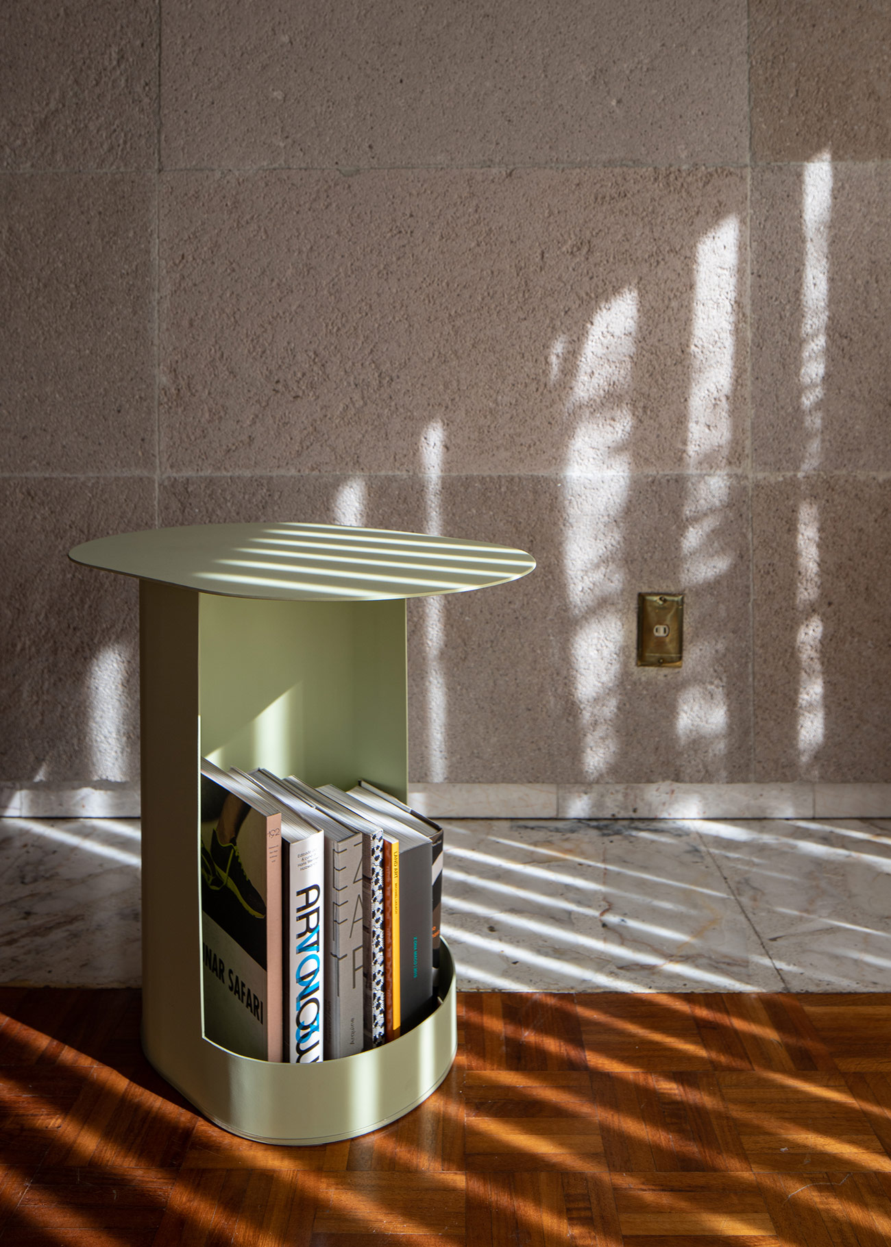 Mesa lateral Nich con estructura inspirada en la geometría de un nicho. Integra un espacio interior multifuncional, adecuado para almacenamiento de libros, colocación de macetas u objetos decorativos. Su configuración estructural optimiza tanto la estética como la funcionalidad, manteniendo líneas limpias y proporciones equilibradas.