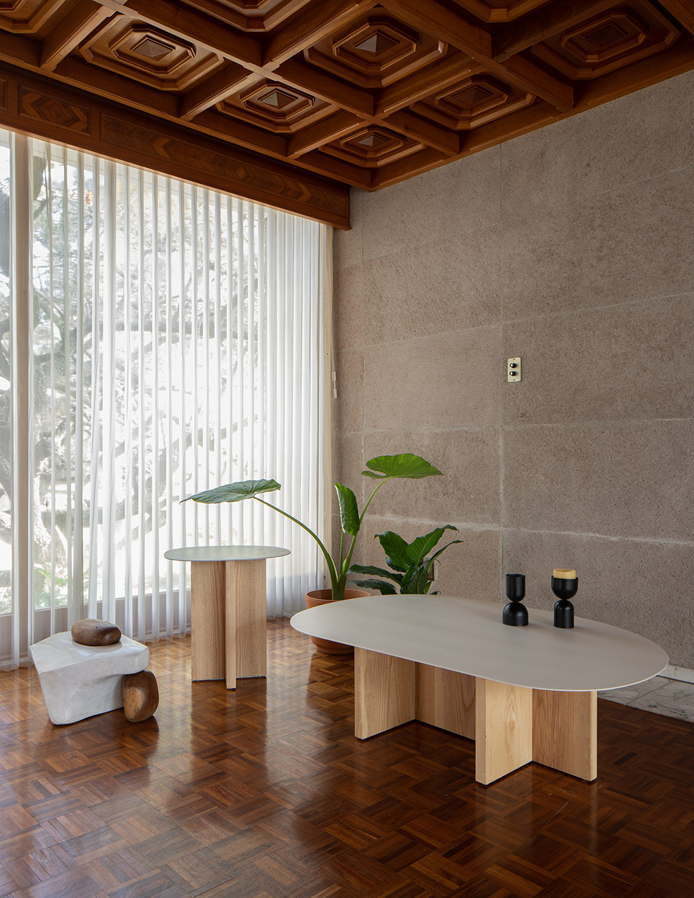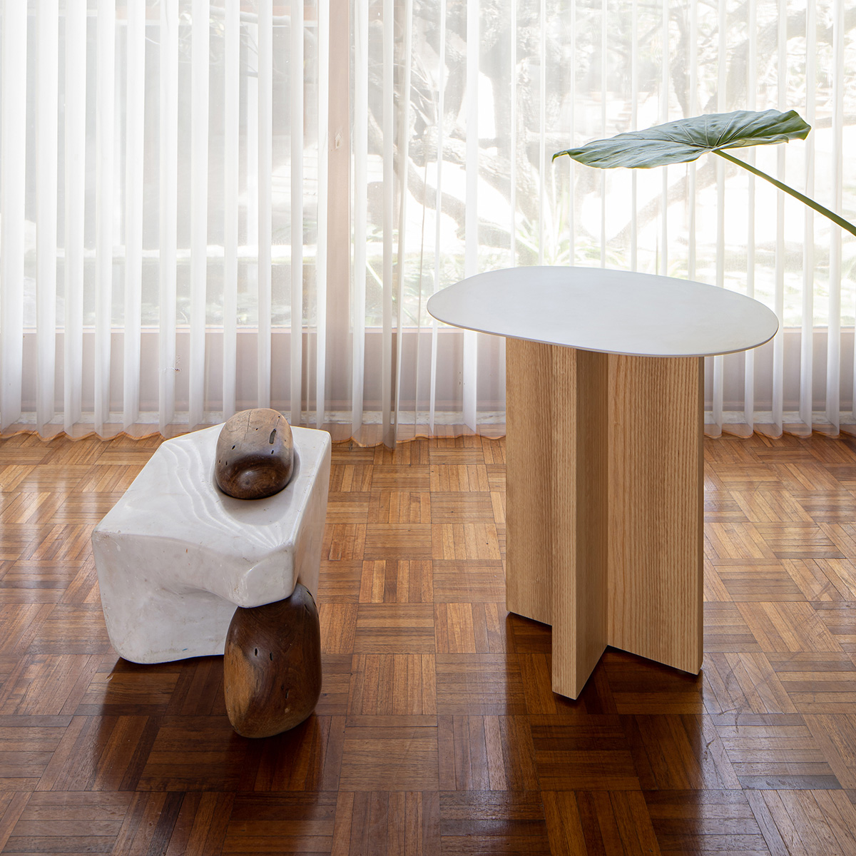 La mesa lateral OVU es una pieza contemporánea que combina líneas orgánicas con una construcción sólida y escultórica. Su cubierta de metal ovalada de bordes suaves descansa sobre una base entrecruzada, logrando un equilibrio entre lo visualmente ligero y lo estructuralmente estable. Disponible en dos versiones de base, madera sólida de fresno o aglomerado con acabado mate.